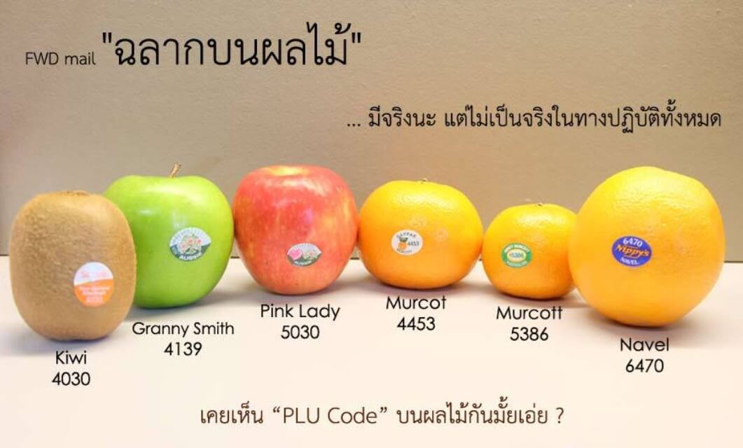 สำนักงานคณะกรรมการอาหารและยา (อย.) กระทรวงสาธารณสุข ชี้แจงตามที่มีการแชร์ข้อมูล ฉลากผลไม้ ว่าขึ้นต้นด้วยเลข 9 แสดงว่าเป็นออร์แกนิก ถ้าขึ้นต้นด้วยเลข 8 เป็นพวก GMO ถ้ามีเลขสี่ตัว ขึ้นด้วยเลข 4 แสดงว่าใช้ ยาฆ่าแมลง นั้น