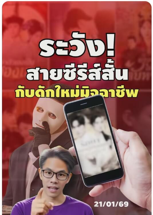 ⛔ อ้างอิงจากข้อมูลของสำนักงานตำรวจแห่งชาติออกมาเตือนว่า ซีรีย์แนวตั้งที่เราดูหรือที่กำลังฮิตอยู่ในช่วงนี้ มันคือกลลวงใหม่ของมิจฉาชีพ